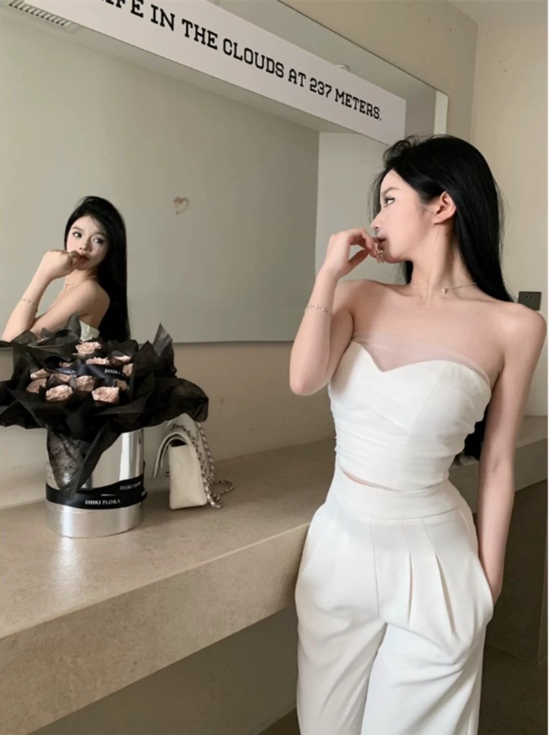 桃心領網紗平口桃心領網紗平口