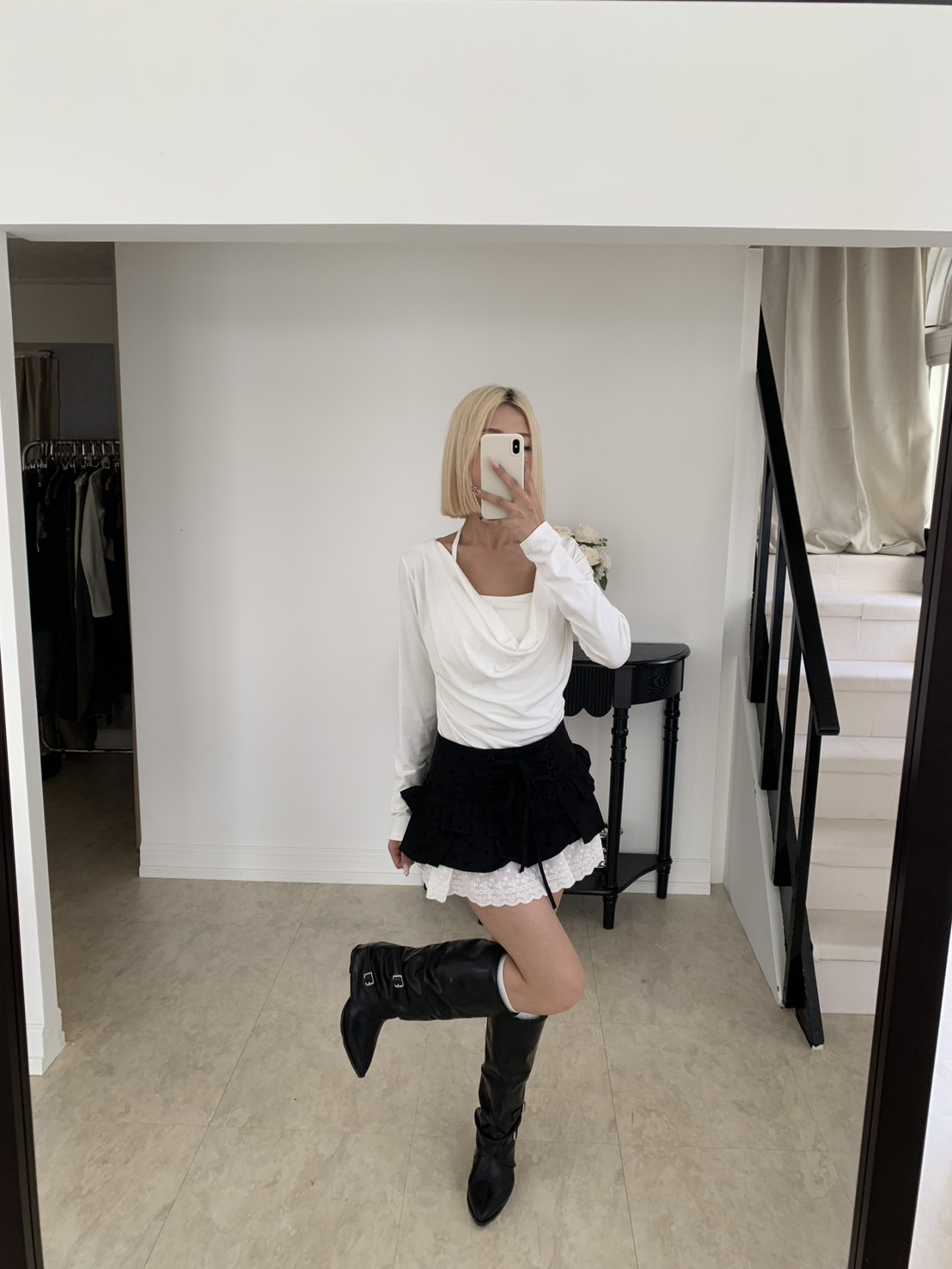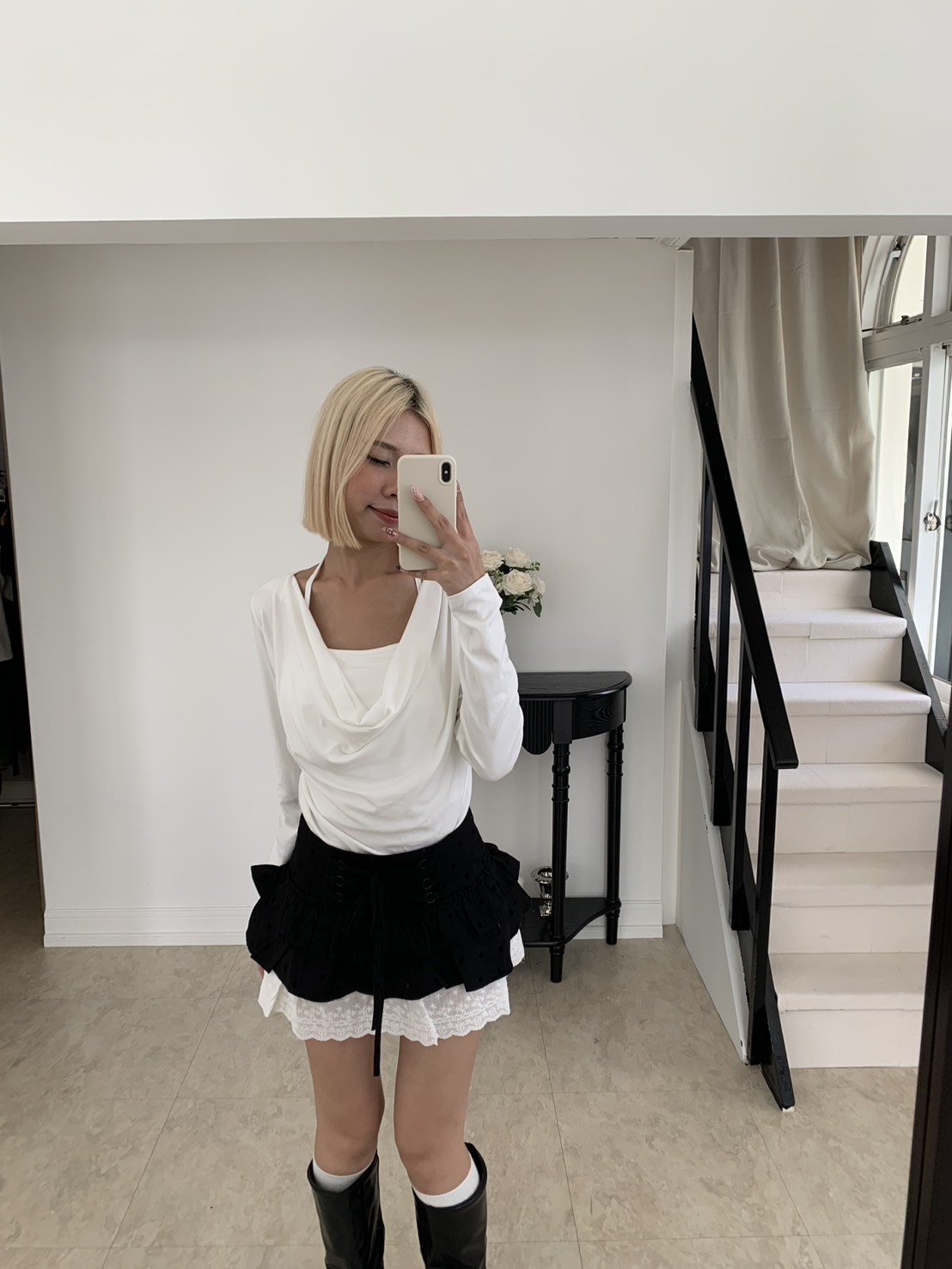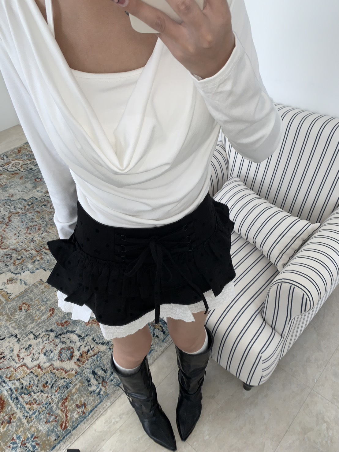 B06 波點紋蝴蝶結短裙